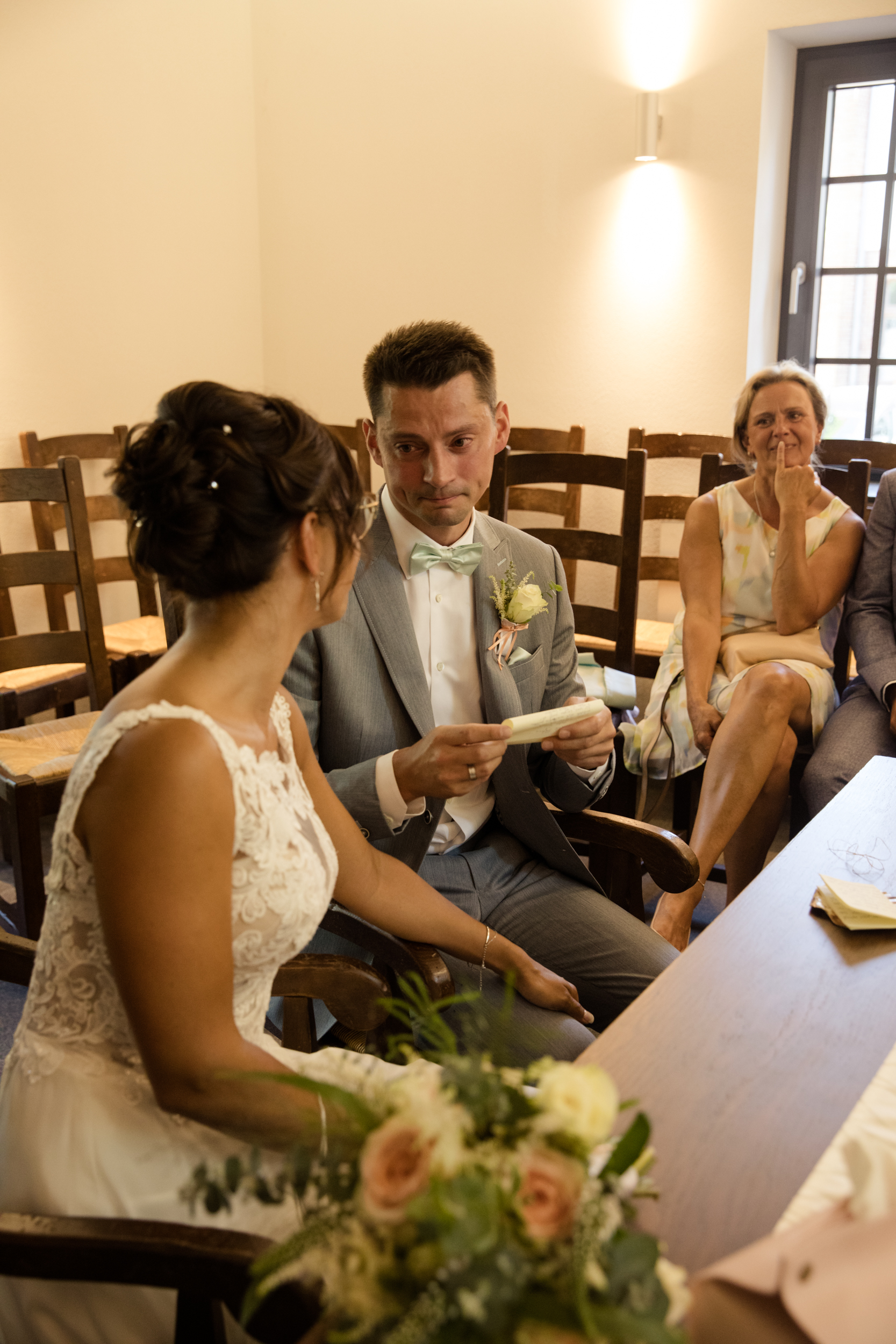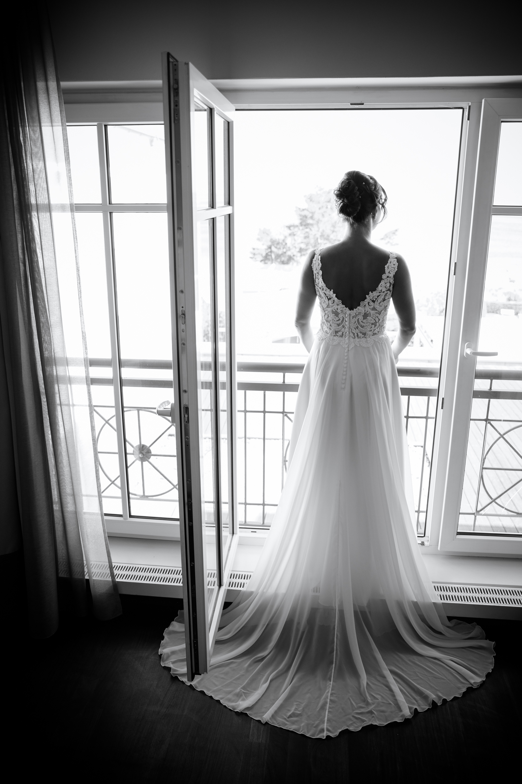 Bei dieser Hochzeit durfte ich die beiden auch am Hochzeitsmorgen begleiten. Für mich immer mit eine der schönsten Zeiten am Hochzeitstag. Es liegt ein ganz besonderer Zauber in der Luft. Anspannung, Vorfreude, Nervosität, Freude … da treffen allerhand Gefühle aufeinander. Auch bei Stefanie konnte man die Vorfreude sofort erkennen. Endlich war der große Tag gekommen und dann auch noch mit Sonnenschein. Beim getting ready stand ihr ihre Mama zur Seite und es war ein sehr emotionaler Moment, als Stefanies Mama ihre Tochter zum ersten mal im Brautkleid sah. Wie sagte sie so schön, „Ich hatte dich doch gerade erst als Baby auf dem Arm.“