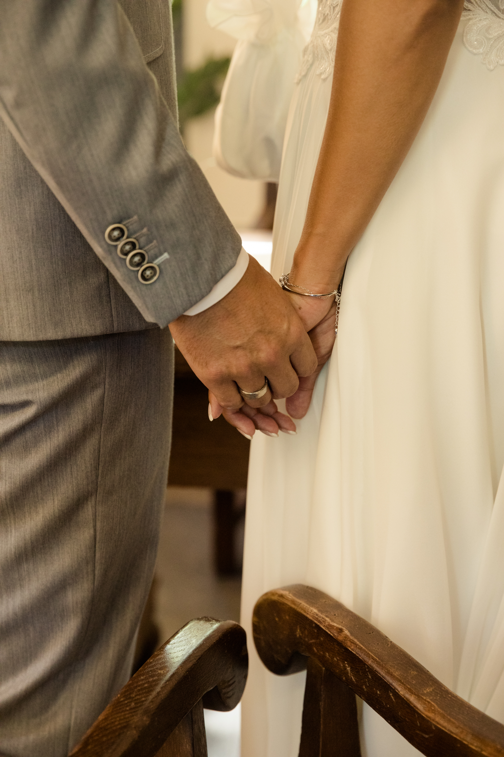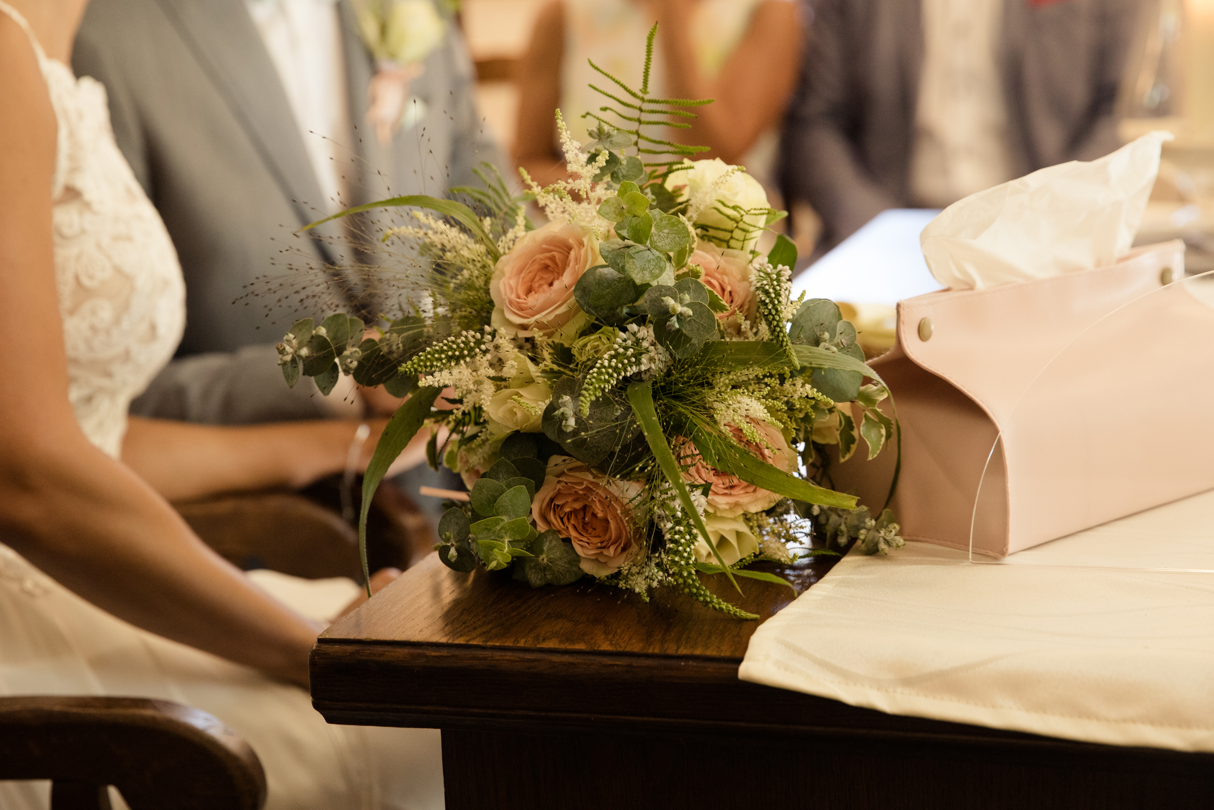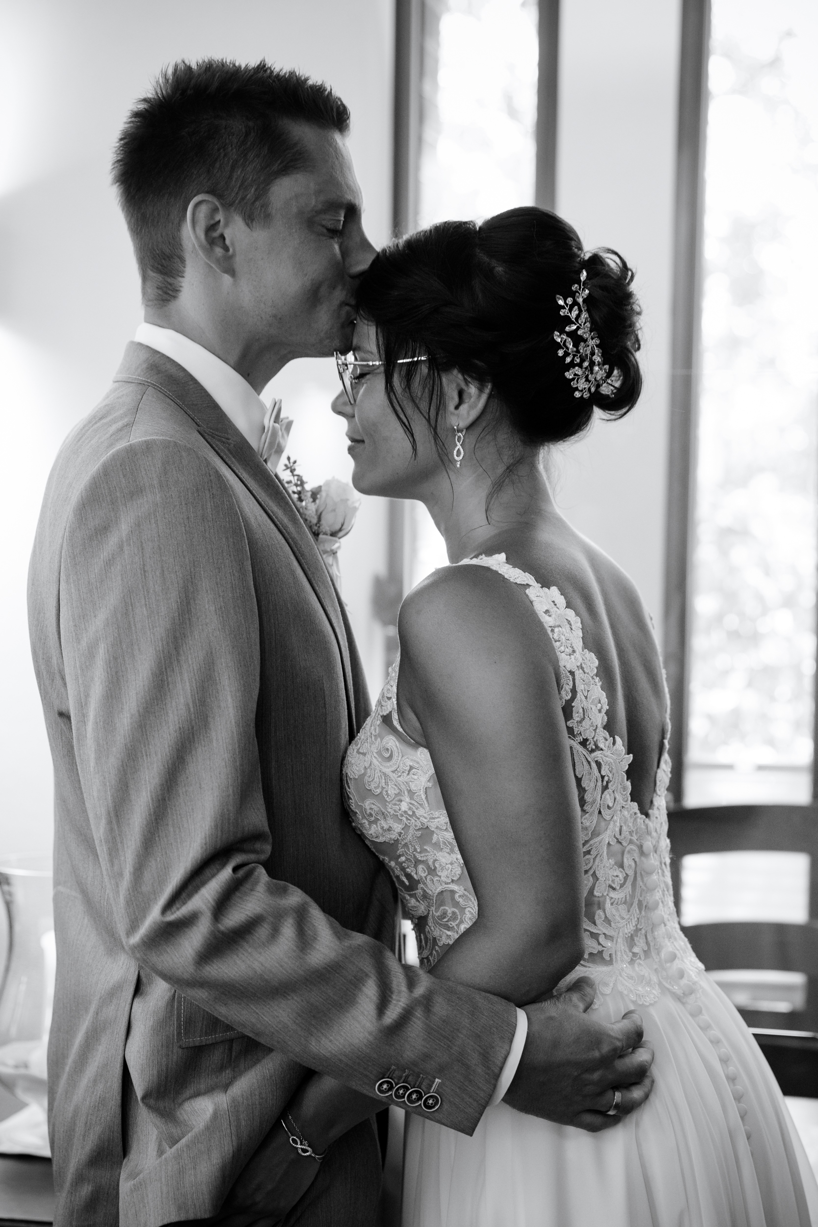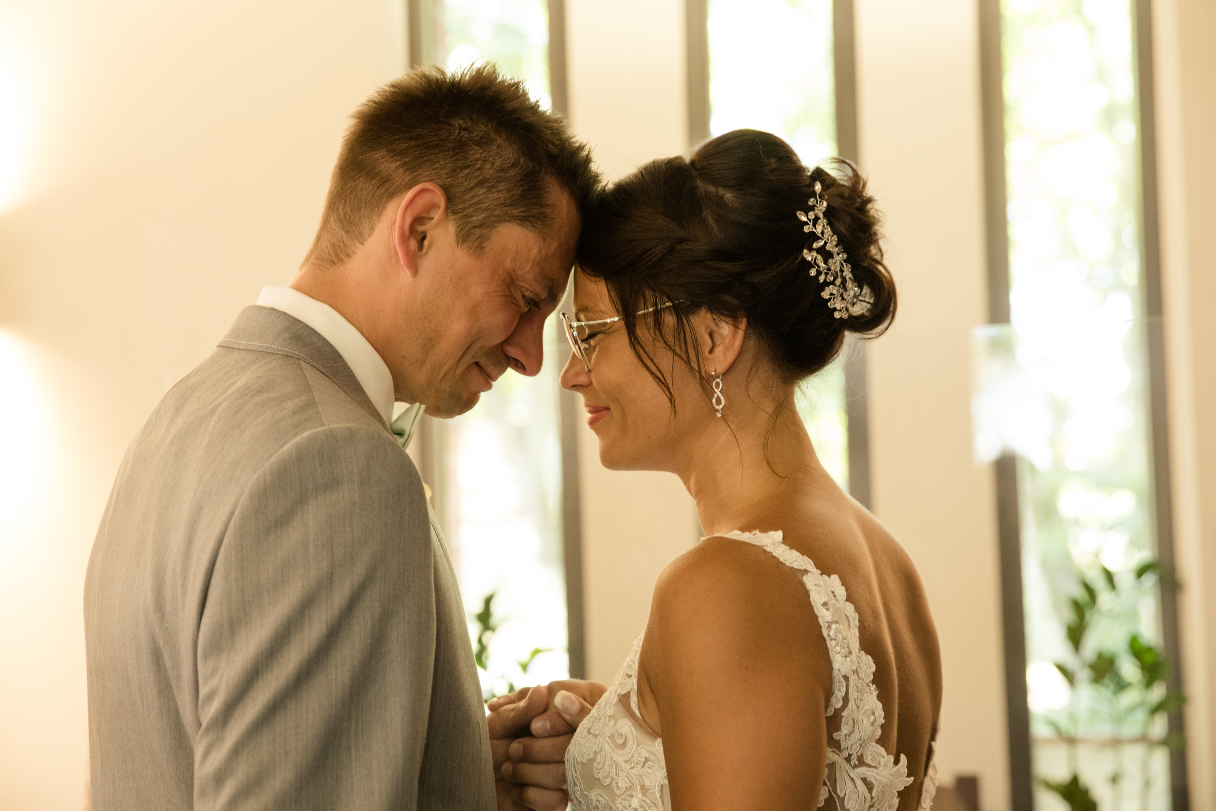 Der große Moment war gekommen und die beiden schritten gemeinsam mit schöner Musik zum Trautisch. Die Standesbeamtin hatte eine wundervolle und emotionale Rede vorbereitet und als kleines i-Tüpfelchen tauschten die beiden ein Eheversprechen aus. Der erste Kuss als Hochzeitspaar durfte natürlich auch nicht fehlen. Die ganzen Plexiglasscheiben machen es uns Fotografen gar nicht so einfach, diese Momente gebührend und ohne störende Scheibe zu fotografieren. Aber wo ein Wille, da ein Weg 😉