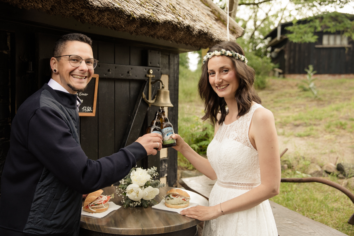 Irgendwann war es dann auch mal Zeit für eine Stärkung und das frisch verheiratete Paar besorgte sich Fischbrötchen und ein kühles Blondes, der perfekte Snack auf Usedom.