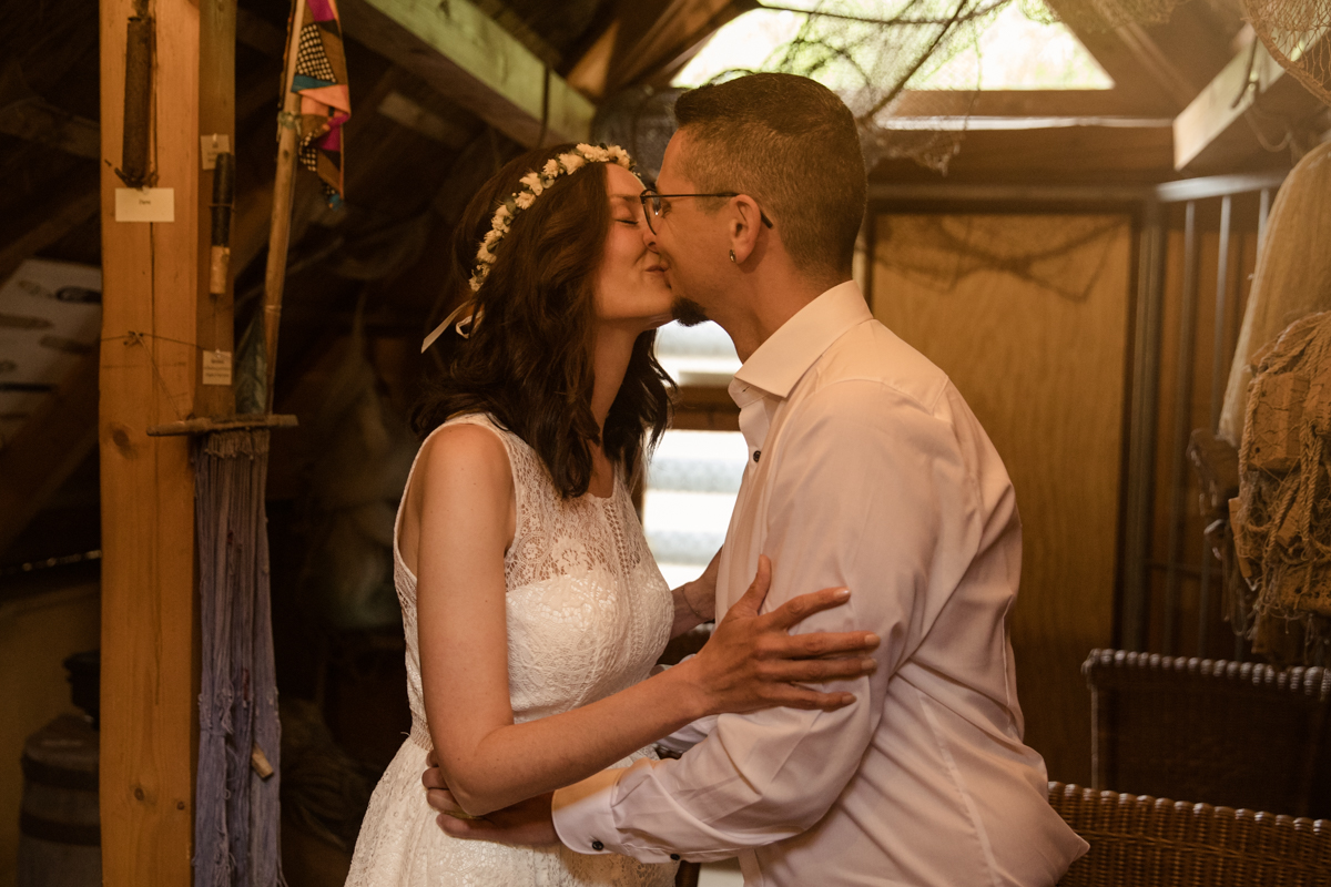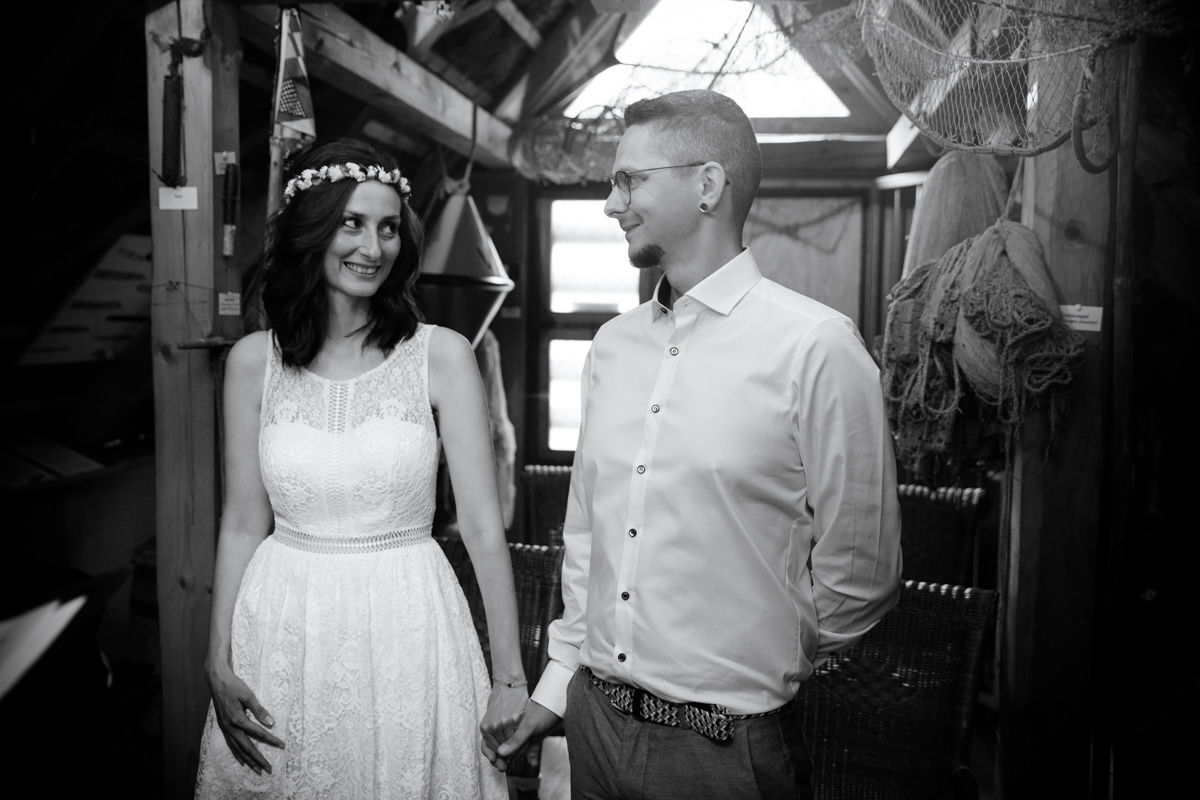 Am ersten Juni durfte ich Francies und Robertos standesamtliche Trauung in den Koserower Salzhütten begleiten. Eine ganz besondere Hochzeitslocation auf Usedom. Es handelt sich hierbei nämlich um das kleinste Standesamt der Insel, welches zu früheren Zeiten eine Fischerhütte war. Wo also ehemals Fisch in Salz gelagert wurde, wird heute ja gesagt. Es herrscht eine ganz urige und maritime Atmosphäre. Mit nur zwei weiteren Sitzplätzen, ist das Standesamt perfekt für Brautpaare mit einer kleinen Hochzeitsgesellschaft.