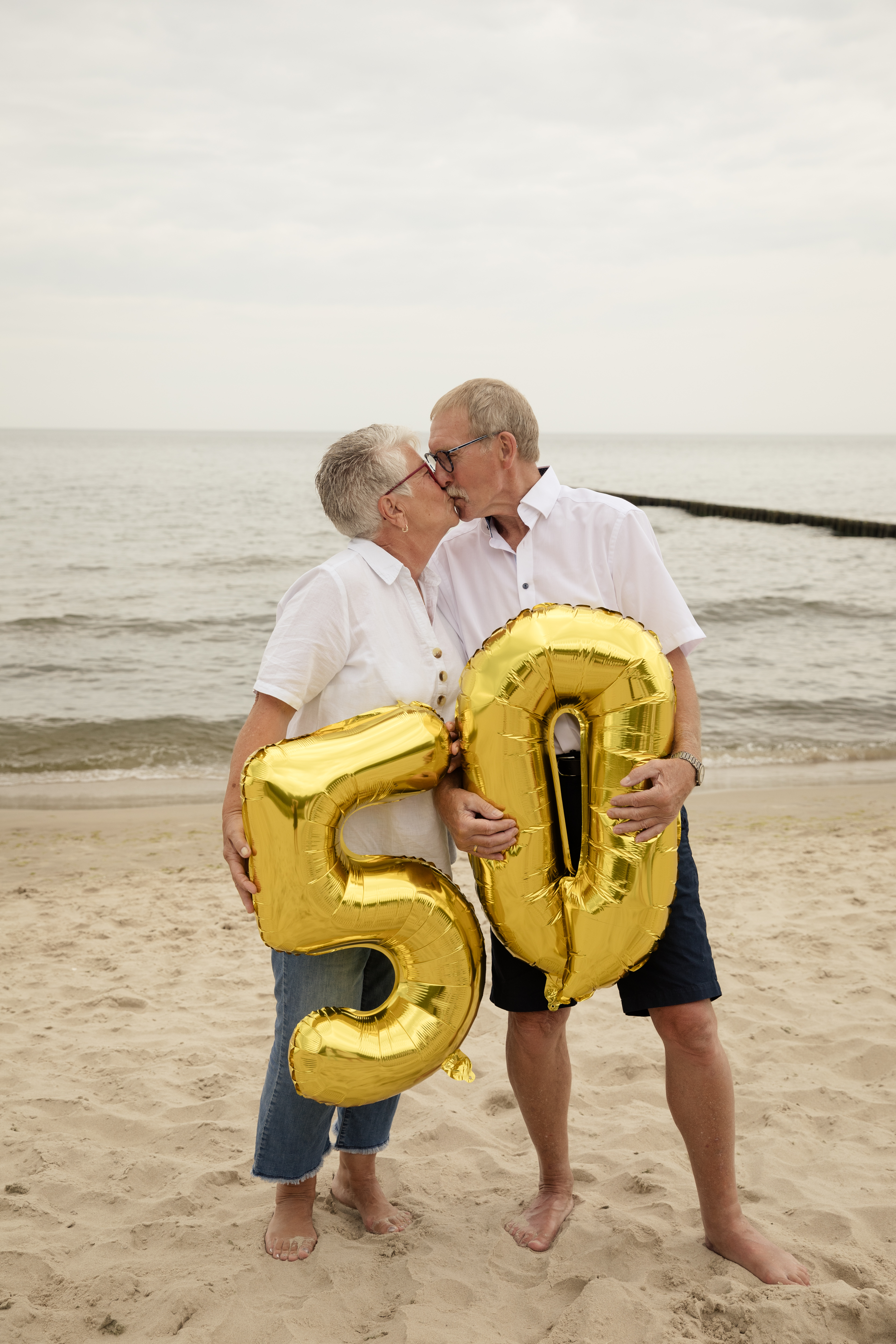 Der Tag der goldenen Hochzeit war für die Großeltern bereits ein besonderer Anlass, aber die Überraschung von Anna machte ihn noch spezieller. Die ganze Familie kam auf Usedom zusammen, und sie alle trugen einheitliche Kleidung, was auf den Fotos wirklich toll aussah. Die Wahl dieser Kleidung betonte die familiäre Einheit und Harmonie. Als Shootingort hatten wir uns das kleinste Seebad der Insel ausgesucht. Zempin ist mit seiner schönen Küste und den urigen Fischerhütten einfach perfekt für Fotos.
