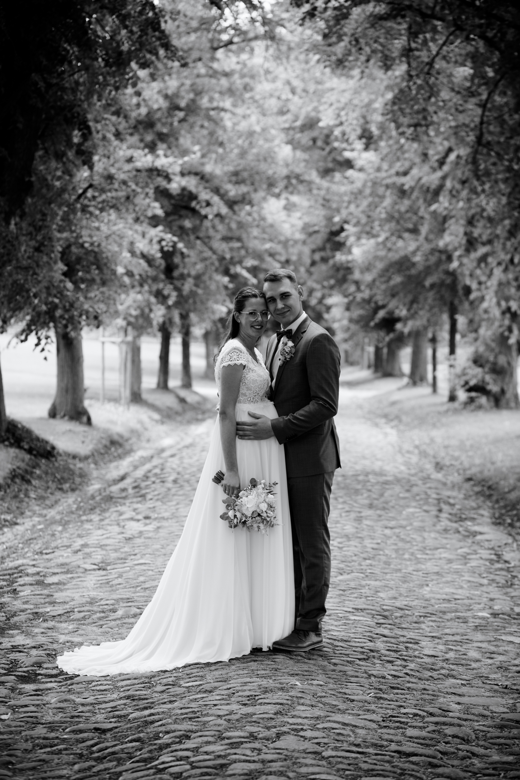 Für das Paarshooting nahm ich Julia und Paul mit zu den romantischen Plätzen in der Gutsanlage, die eine Vielzahl von malerischen Kulissen bot. Neben der charmanten alten Allee, dem rustikalen Pferdestall und den historischen Ruinen, ermöglichte uns auch der direkte Zugang zur Peene wundervolle Fotomöglichkeiten.