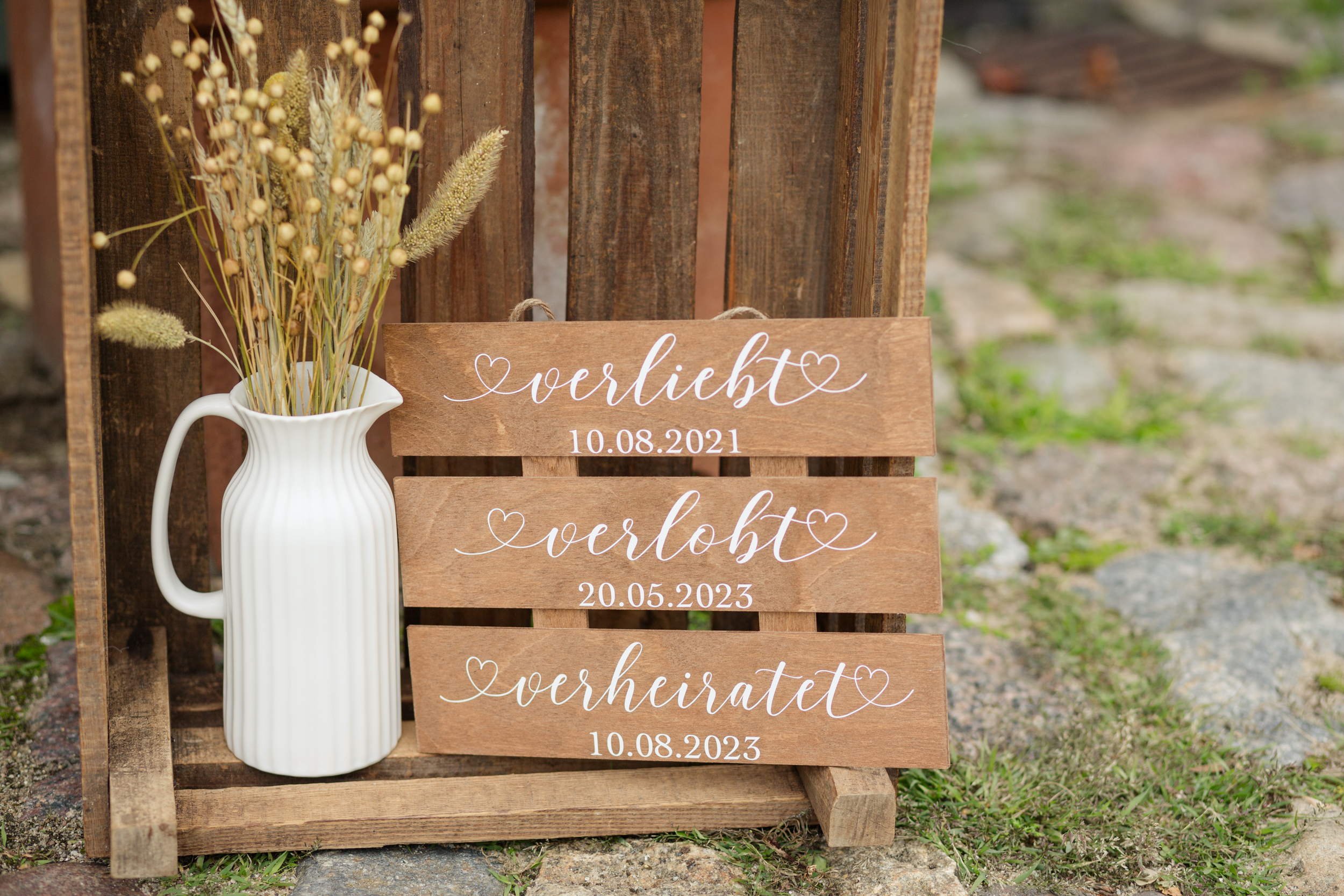 Nach der Trauung wurden Julia und Paul von ihren Gästen mit einem herzlichen Empfang mit Seifenblasen begrüßt. Die Gäste ließen die beiden ein Herz ausschneiden und Paul schnappte sich seine Julia, um sie durch das Herz zu tragen. Anschließend nutzten wird die Zeit für Gruppenfotos in der Gutsanlage.