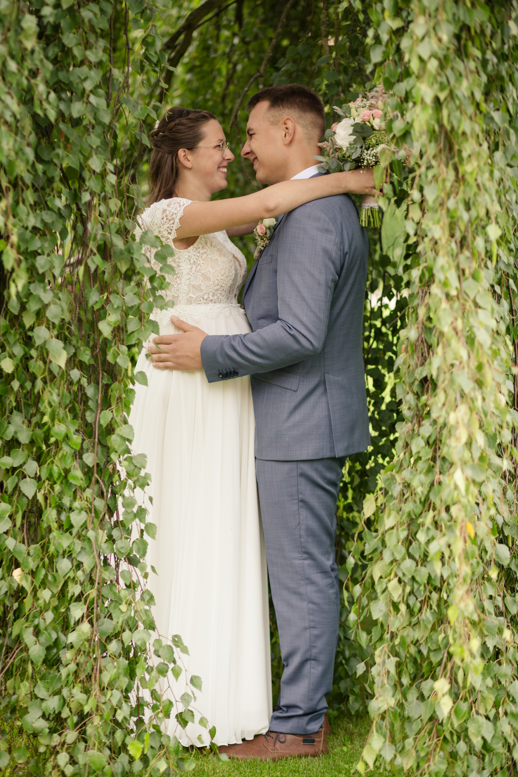 Der Babybauch wurde dabei einfühlsam in Szene gesetzt, während das Paar entlang der alten Allee flanierte und am Steg an der Peene verweilte. Schaukelfotos im Park und Kussbilder unter den Weidenzweigen, waren weitere Höhepunkte unseres Shootings. Ich schätze die kleinen Details, die an diesem besonderen Hochzeitstag entstanden sind.