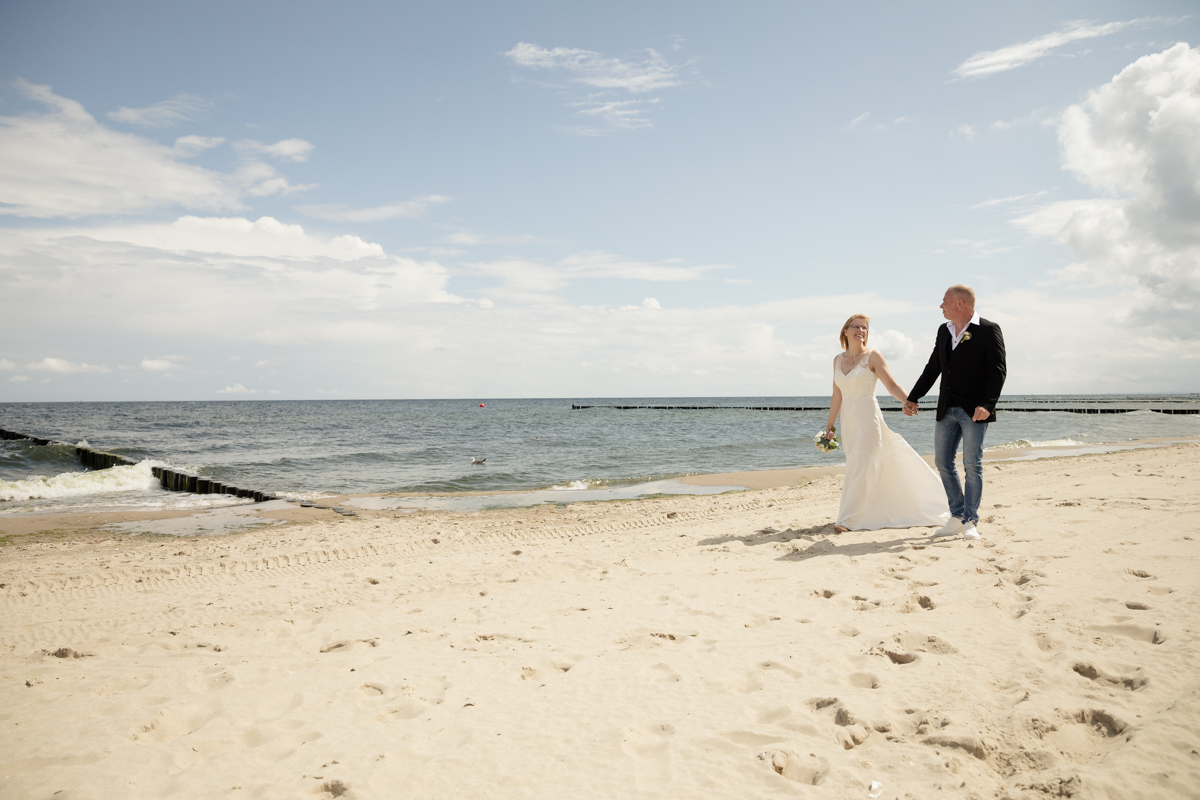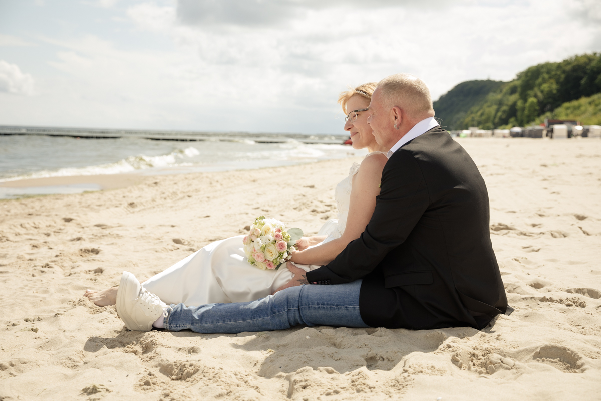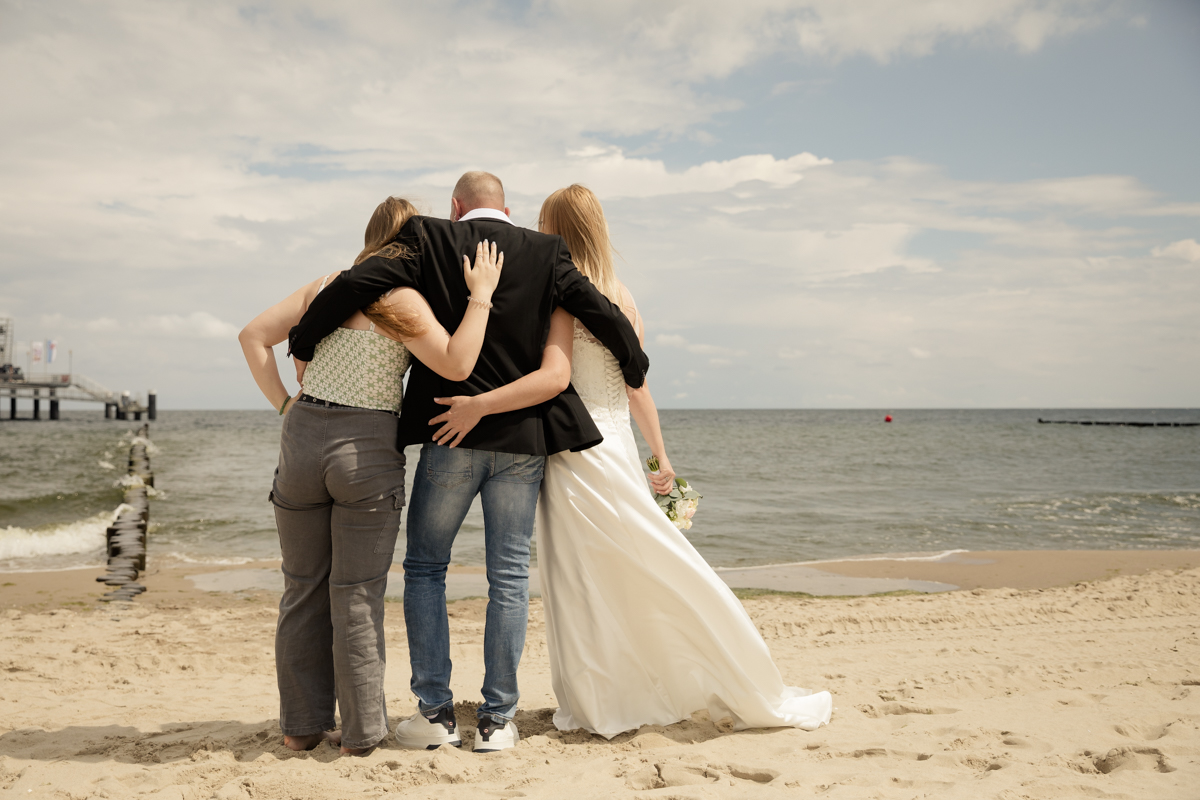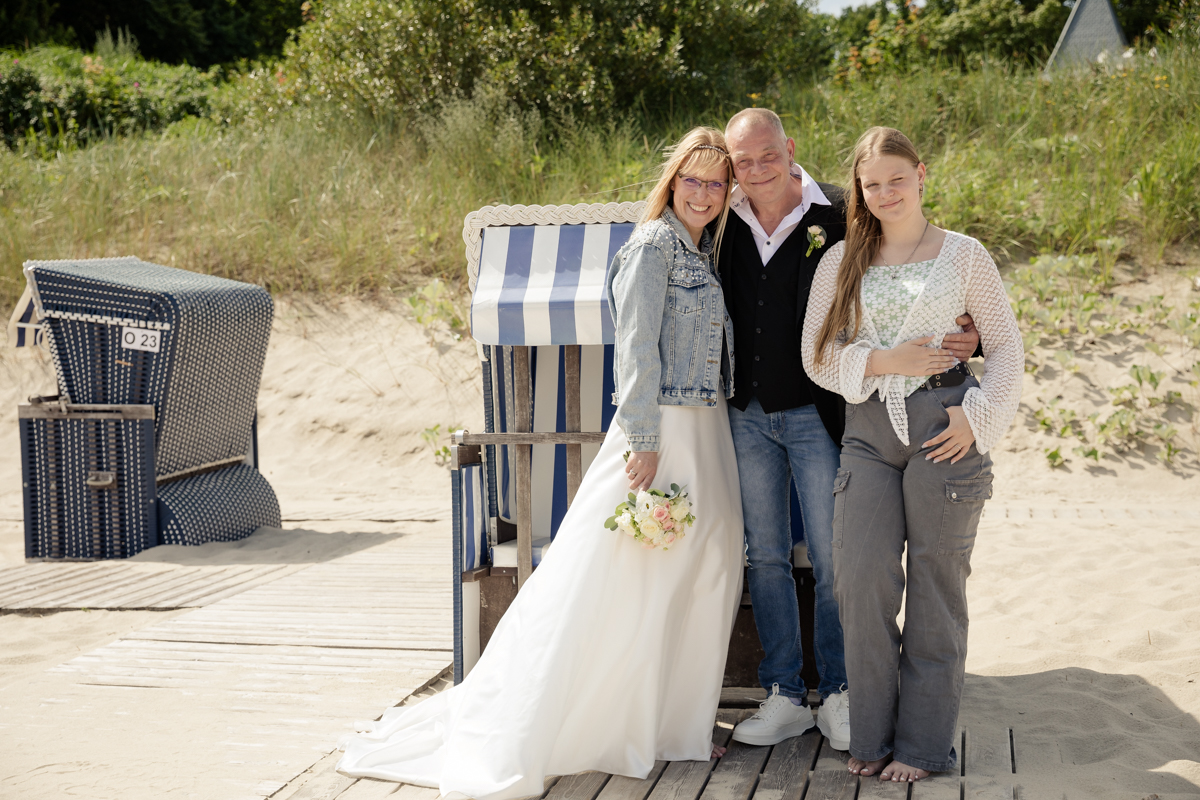 Natürlich durfte ein Besuch am Strand von Koserow nicht fehlen. Hier entstanden weitere traumhafte Paar- und Familienfotos, die die Liebe und Verbundenheit von René, Bianca und ihrer Tochter perfekt festhielten. Die weißen Sandstrände und das blaue Wasser im Hintergrund schufen eine einmalige Kulisse, die für wunderschöne Erinnerungsfotos sorgte. Die beiden strahlten regelrecht vor Glück, und auch ihre Tochter war sichtlich begeistert, an diesem besonderen Tag ihrer Eltern teilhaben zu dürfen.