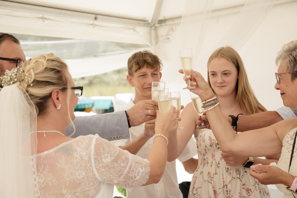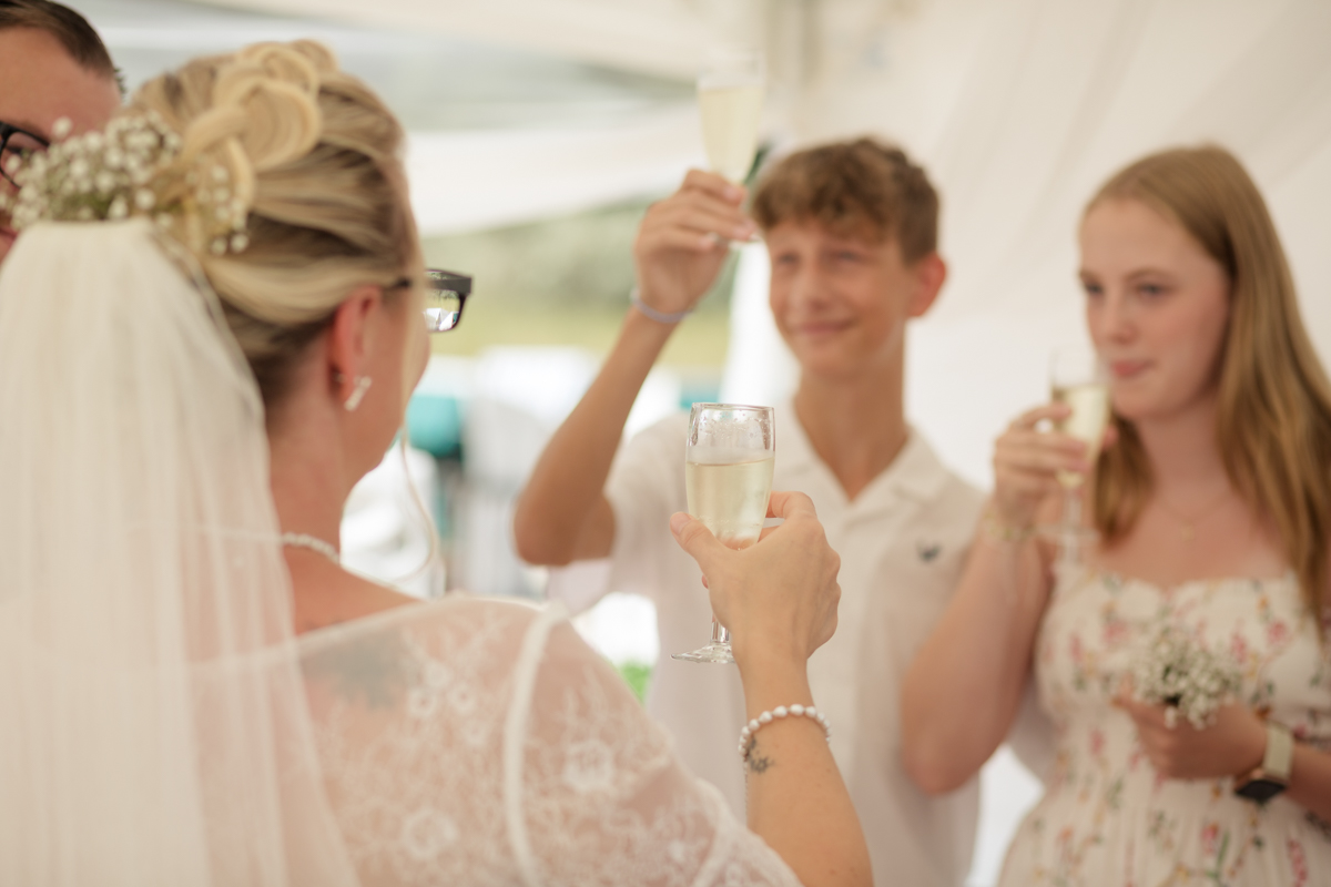 Im kleinen Kreis ihrer Familie gaben sich Claudia und Michael ihr Ja-Wort. Nach dem Kuss und dem Ringtausch durften die Gratulationen ihrer Liebsten natürlich nicht fehlen. Der darauffolgende Sektempfang bot die Gelegenheit, den Moment zu genießen und die ersten Erinnerungen an diesen besonderen Tag festzuhalten. Auch die Geschenke der Kinder und Eltern, sorgten für einige Tränchen.